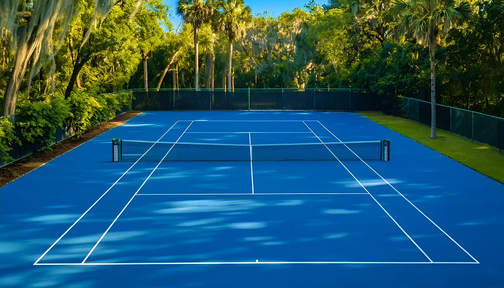 Reparamos grietas y superficies dañadas, restaurando el color y la textura original de la cancha.